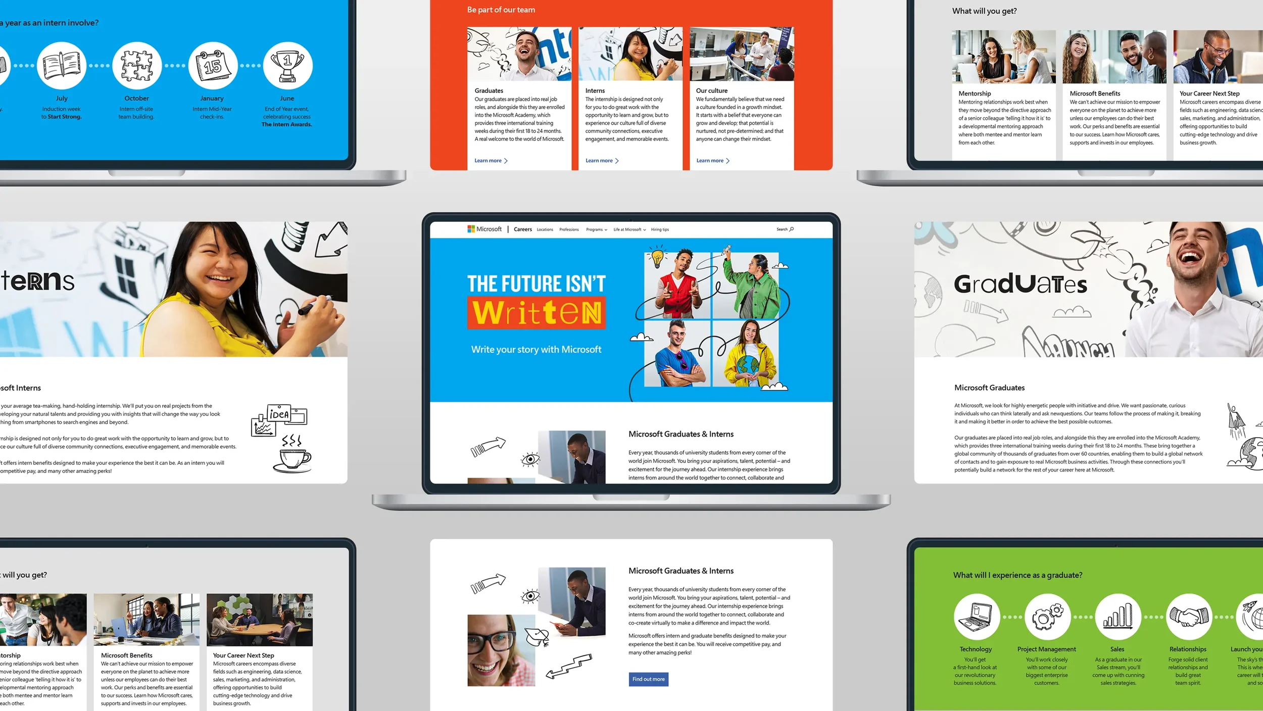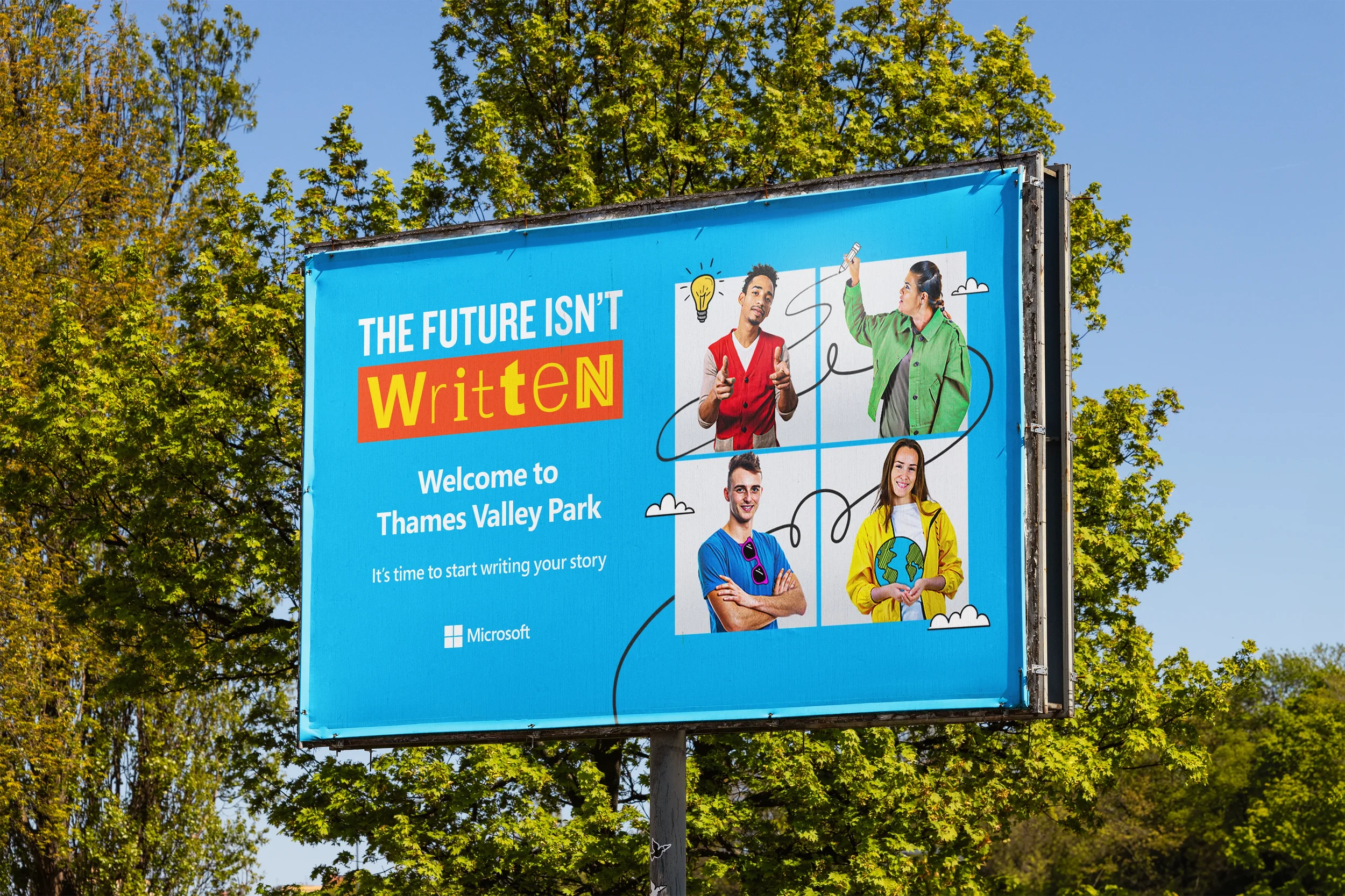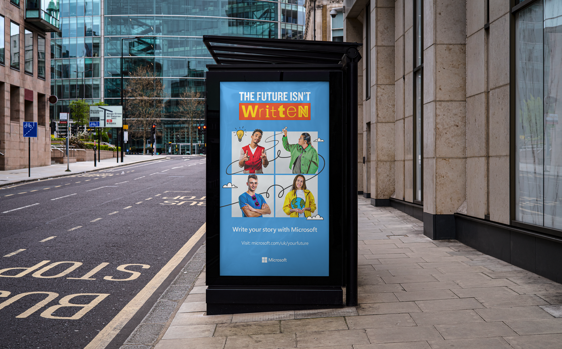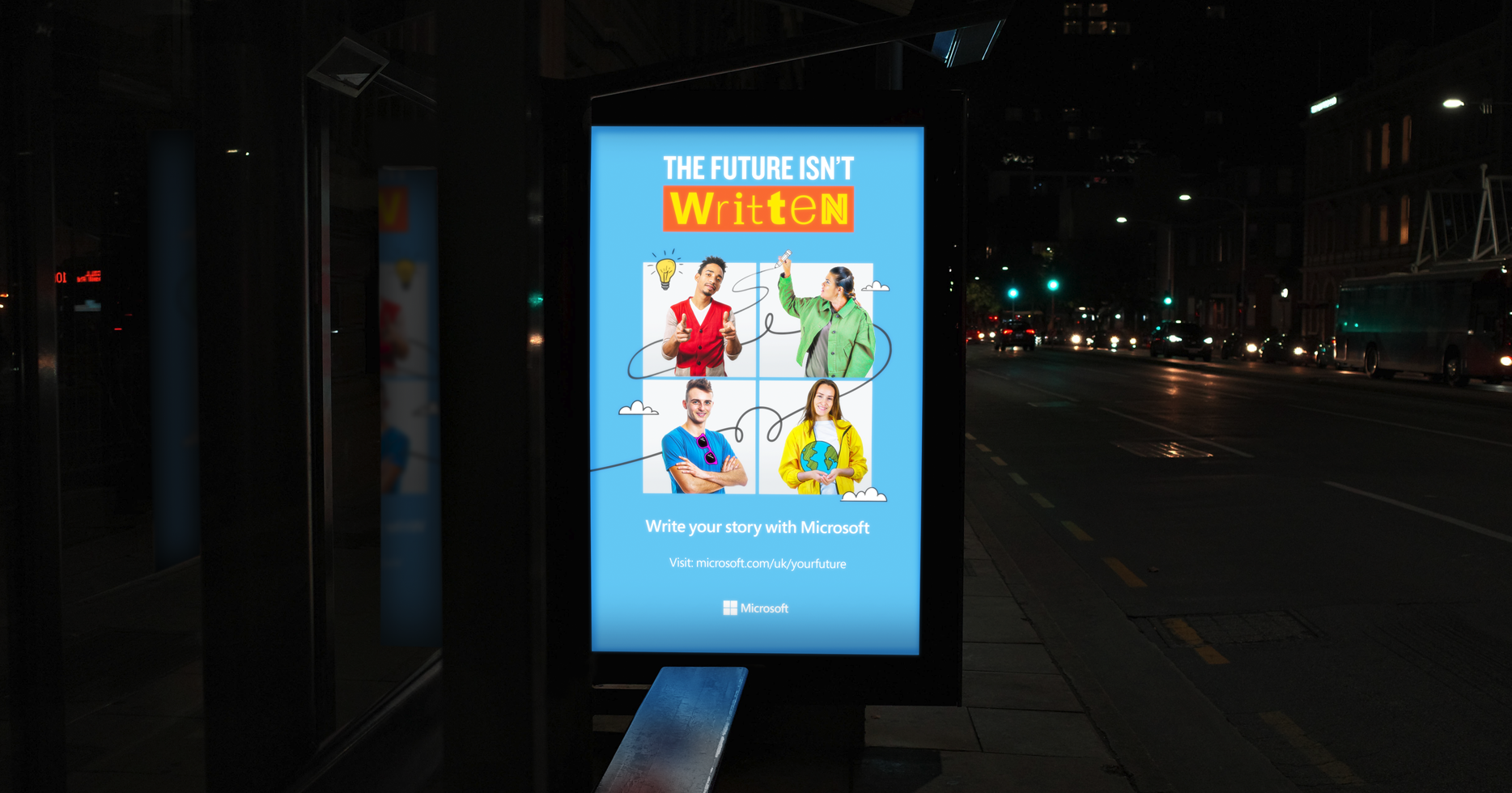 Playful line illustrations were also layered throughout the campaign collateral. These illustrations symbolised imagination, their dreams and untapped potential, a metaphor that each individual’s path is still being written. This campaign successfully positioned Microsoft across digital, social and campus recruitment channels, highlighting its commitment to empowering young talent to shape the future rather than simply follow it. These examples illustrate how the campaign was adapted seamlessly from large-format print to online digital assets.