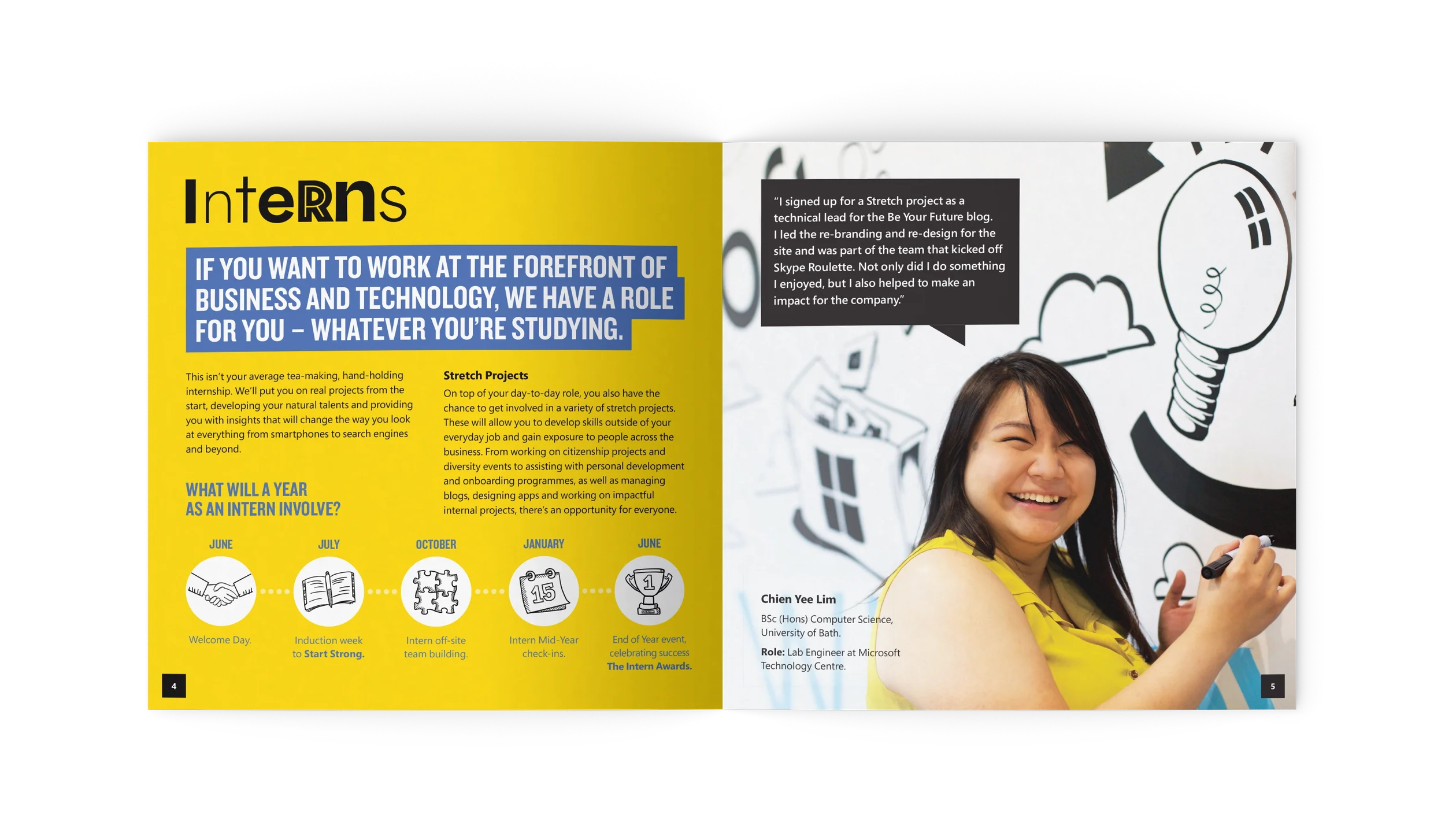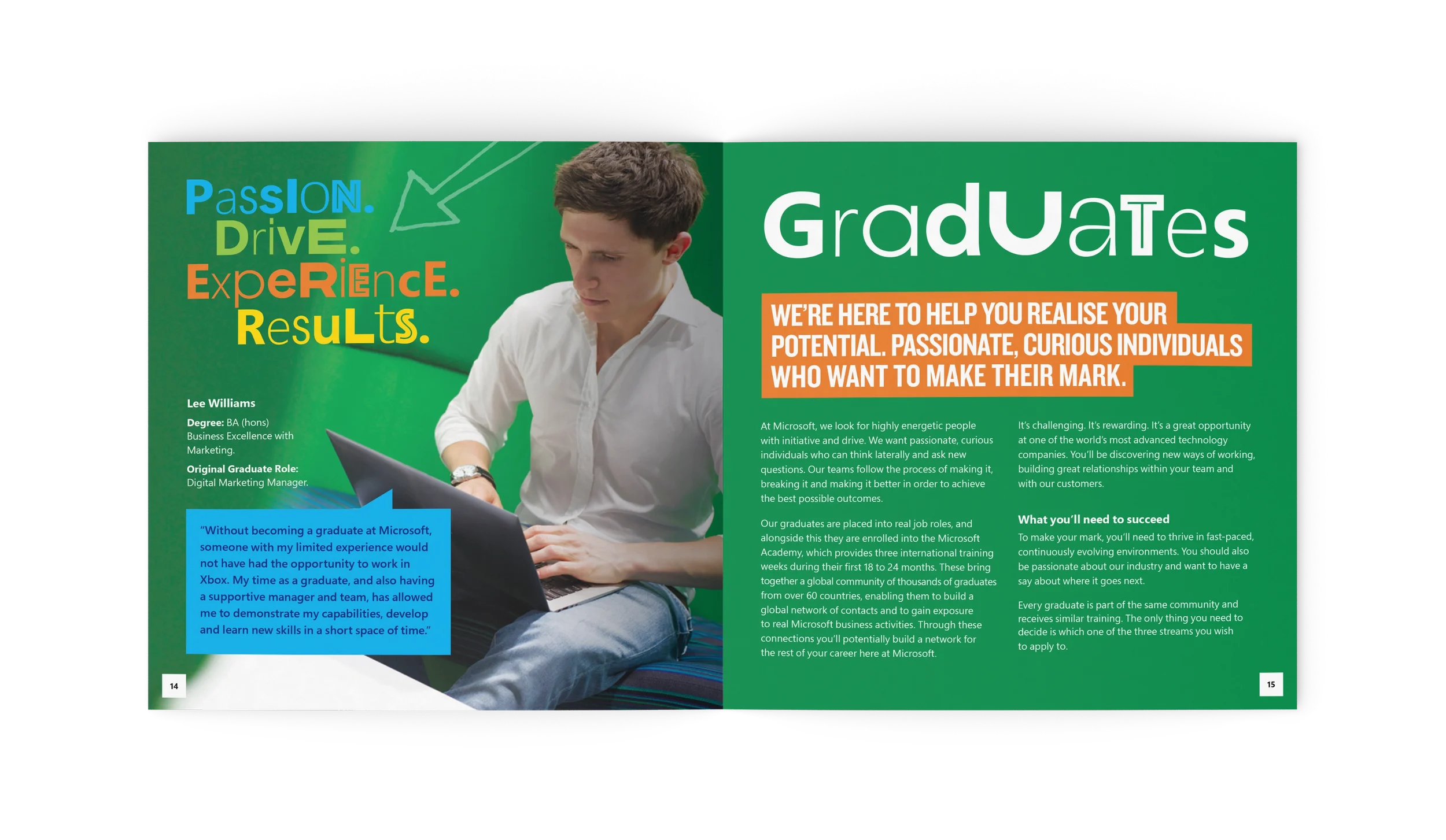 The campaign centred around authentic, aspirational imagery captured working with a photographer during a shoot at Microsoft’s Thames Valley Park Campus that showcased real interns and graduates. These shots represent a diverse group of young people excited about their potential futures with Microsoft.